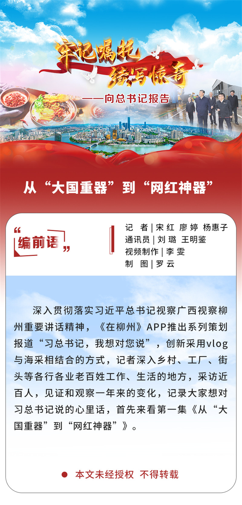 (2022年4月中下旬,《柳州新闻》和《在柳州》客户端刊播《牢记嘱托 续写惊奇——向总书记报告》系列报道)