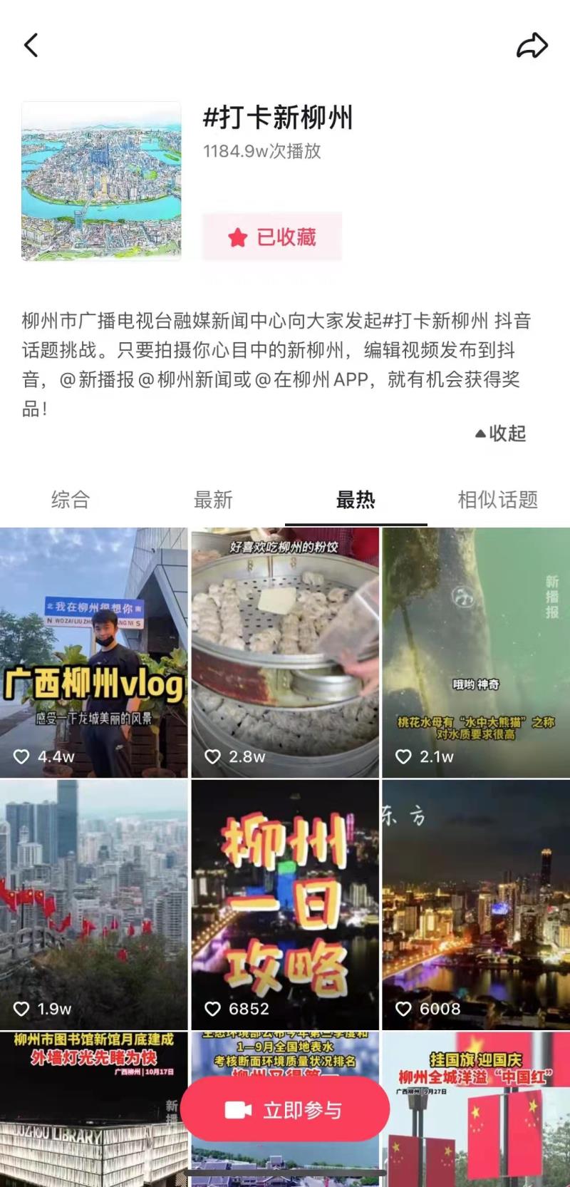 (“打卡新柳州”抖音话题挑战活动页面截图)