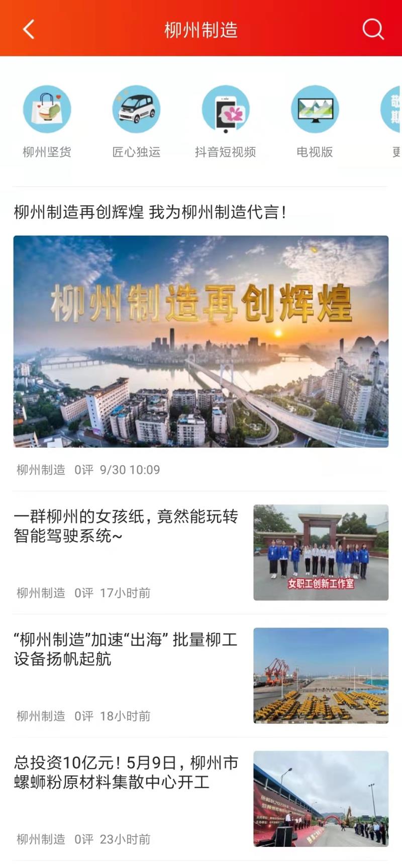 (《在柳州》客户端《柳州制造》专题页面截图)
